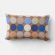 Lumbar coussin dans un milieu du siècle moderne imprimé géométrique de points géants, dans une grille de neuf couleurs coordonnées - tons beige, crème, terre cuite, clair, moyen et bleu foncé, sur un arrière - plan taupe