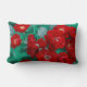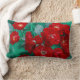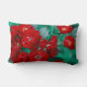 Coussin Rectangle Roses Rouges Feuilles Vert Pâle