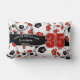 Ce coussin lumbar esprit d'équipe pour un joueur de football présente des boules de football de tailles variées avec des couleurs rouge et noir équipe tourné partout sur un arrière - plan blanc et un numéro de maillot proéminent en rouge sur une bande de couleur noire pleine longueur, sur laquelle vous pouvez également customiser le nom de l'athlète, nom de l'équipe et nom de la mascotte en blanc - le côté inverse du coussin a une version plus grande des boules motif de football arrière - plan rouge - par katz_d_zynes - des serviettes de toilette de même style pour les joueurs de football se trouvent dans la collection de serviettes de football de nom d'équipe de katz_d_zynes >>>>>> https://www.zazzle.com/collections/119856912745827517
