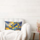 Elevate your space with this exquisite lumbar pillow featuring an abstract watercolor painting of a mystical fantasy castle. The design blends rich navy blue and warm mustard yellow with golden stardust accents. A perfect artistic centerpiece for modern home decor, adding a touch of celestial magic to your living room or bedroom.