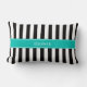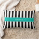 Coussin Rectangle Ruban sarcelle Monogramme Nom Rayure Noir Blanc