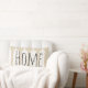 Des oreillers crémeux à la silhouette de grains de blé blanc et le mot "famille" sur le devant en gris foncé. L'arrière est en gris avec le nom de votre famille.