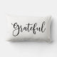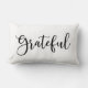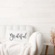 Un simple oreiller moderne à lancer avec le mot reconnaissant. Un joli ajout à votre décor d'action de grâce. Il est de couleurs variées. Conçu pour vous par Blackberry Boulevard.