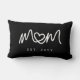 Conception d'oreiller lombaire simple avec écriture blanche et cœur unique pour maman, mettant en vedette une typographie d'écriture propre avec un petit détail de cœur intégré dans le mot maman, créant un point focal simple et significatif. Le fond noir donne au design un aspect moderne et classique tout en gardant l'année d'établissement personnalisée facile à mettre en évidence.