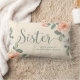 Ce coussin élégant comporte un arrière - plan doux de pêche avec le pois blanc subtil, et les fleurs de pêche et blanches à la mode avec un bon nombre de feuille vert. Le mot "soeur" apparaît en beau manuscrit manuscrit, et il y a un endroit à personnaliser avec votre nom.