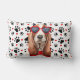 Un merveilleux coussin lombaire à jumeler avec nos versions carrés et épicer la vie de l'amoureux des chiens Basset Hound. Un arrière - plan d'empreintes de pattes noirs et de coeurs rouges sur blanc.