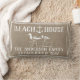 Silhouette blanche d'oiseaux de bécasseau au-dessus de copie de toile de jute de faux avec les mots "Chambre de plage" et nom de famille et date établie dessous.