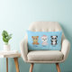 Trois dessins animés d'ours mignons sur oreiller lombaire bleu clair Columbia.