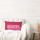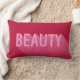 Coussin rose avec un design abstrait moderne du mot "Beauté" avec un long dégradé d'ombre. Ajoutez une touche amusante à votre maison ou dortoir avec cette coussin moderne. *Veuillez noter que le filigrane Zazzle qui apparaît dans l'aperçu du zoom n'apparaîtra PAS sur le produit imprimé final. © Bois de rose et agrumes