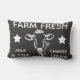 Agritourisme de campagne coussin lombaire de vache laitière fraîche avec un arrière - plan gris foncé.