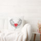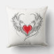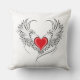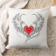 Coeur rouge peint de façon artistique avec ailes d'ange gris, décoré de contour lisse noir.