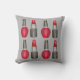 Le coussin présente une illustration originale de tubes de rouge à lèvres et de bouteilles de vernis à ongles, imprimés sur un arrière - plan gris. Parfait pour les amateurs de maquillage favoris. Ne vois-tu pas ce que tu cherches ? Vous avez besoin d'aide pour la personnalisation ? Contactez Rebecca pour avoir quelque chose conçu pour vous.