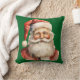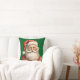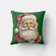 A pillow with a cute retro style illustration. Santa Claus with a bushy white beard wearing his traditional red suit.