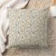 Coussin Retro jaune et bleu motif floral l Aquarelle