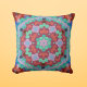 Coussin Retro Mandala Flower Blue Rouge et Turquoise