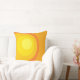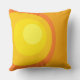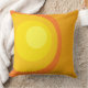 Retro style big circle pattern in yellows and orange shades on throw cushions.