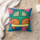 Lumineuse et amusante conception d'oreiller jetez avec une fourgonnette rétro aux couleurs vives sur un arrière - plan psychédélique. Parfait pour ajouter une touche de nostalgie et de vibes hippies à tout espace.