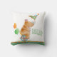 Cute whimsical aquarelle animal rhino enfants / bébé coussin de coussin de bébé. Ajoutez votre propre nom pour un nouveau cadeau personnalisé mignon bébé ou baby shower, actuellement, dit Riley, ajoutez votre propre initiale au drapeau aussi. Rhinocéros brun à l'eau douce sur un cirque monocycle avec des teintes automne/automne de brun, vert, orange, violet et aqua. Unique peinture et design d'aquarelle d'animal capricieux par Sarah Trett. www.sarahtrett.com pour www.mylittleeden.com
