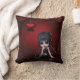 Le carreau de romance magnifiquement gothique (fabriqué aux Etats-Unis) avec une copie d'une petite fille mignonne de goth s'asseyant dans une belle salle gothique rouge et noire avec la belle damassé drape et un coeur accrochant fleuri romantique élégant. Elle est reposée dans une pose différente sur le dos du coussin. Un cadeau élégant et original - perfectionnez pour des adolescentes et des goths ! Des conceptions magnifiquement gothiques.