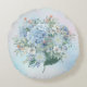 Cette jolie coussin ronde est ornée d'un bouquet d'hydrangées dans de jolis tons bleus.
