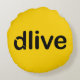 Un coussin rond de DLive de jaune avec le mot-art noir