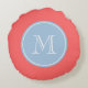 Coussin rond de monogramme personnalisé par bleu