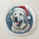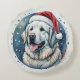 Fluffy Grandes Pyrénées autour du coussin de Noël avec chapeau de Père Noël.