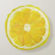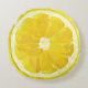 Design géométrique bas et moderne, coussin rond de tranche de citron jaune frais. Motif de fruits amusant en polygonal.