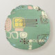 Jeepers ! Si vous êtes un fan de style moderne de la moitié du siècle, vous irez franchement singe pour ce coussin rond moderne de conception graphique de la moitié du siècle. Les caractéristiques de conception une reproduction d'un tissu vintage avec les graphiques frais. L'arrière - plan est vert de jade avec des conceptions kitschy dans l'ecru, le brun, le jaune, le bleu et le rose. C'est la manière parfaite d'ajouter un certain talent de la moitié du siècle à votre décor à la maison.