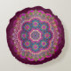 Elégant accent rond lancer oreiller fait en prune, avec un mandala coloré, au milieu.