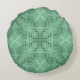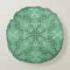Lance ronde oreiller avec un motif détaillé et complexe de feuilles et tourbillonne dans trois nuances de vert. Design symétrique orné en vert apaisant cool.