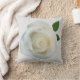 Une rose blanche fraîche en gros plan s'affiche sur un coussin décorateur carré. Pour la maison ou le jardin - peut être personnalisé avec le nom ou le dicton préféré.