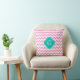 Motif zig-zag à chevrons rose et blanc, monogramme d'étiquette quatrefeuilles sarcelle