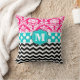 Montrez votre style personnel d'une manière d'amusement avec ces roses indien et coussin noir de monogramme de damassé et d'impression de chevron.