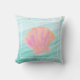 Rappelez-vous votre voyage avec ce beau coussin de coquillage. Comporte un coquillage coloré stylisé avec des bords imprimés en or, sur un arrière - plan sous-marin onduleux. Grand cadeau pour n'importe qui qui aime la plage ou l'océan !