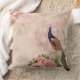 Ce coussin est décoré d'une jolie image vintage de fleurs de pivoines roses avec un magnifique paon bleu et bronzé à un coin. Un accent unique pour presque toutes les décorations. Les deux côtés du coussin ont la même image. *Crédit de design pour ThingsByLary.