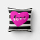 Coussin rose lumineux d'amour de coeur avec les rayures noires