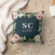 Coussin Rose peony floral et feuillage eucalyptus élégant