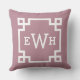 Un élégant coussin de jet rose poussiéreux présentant un monogramme personnalisable à trois lettres à l'intérieur d'un cadre de bordure géométrique à clé grecque blanche. Le design romantique blanc sur rose poussiéreux apporte une touche chaleureuse et féminine aux chambres à coucher, salons ou coins de lecture. Personnalisez avec vos initiales ou un monogramme de couple pour un beau cadeau.