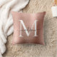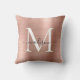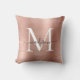 Rose Rose Or Brossé Métal Girly Script Monogramme Lancer Oreiller