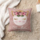 Coussin pétillant princesse rosée rose rosé. Joli visage de princesse chatte en or rose, parties scintillant rose et or rousse, nez en forme de coeur rose et de grandes cils dorés parties scintillant oeil, avec une couronne et rose et roses rouges arrangement floral. arrière - plan brillant d'or rose. customisez facilement et ajoutez votre nom pour personnaliser le coussin.