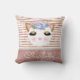 Coussin princesse rosé rose rosé. Joli visage de princesse chatte en or rose, parties scintillant rose et or rousse, nez en forme de coeur rose et de grands cils dorés parties scintillant, avec une couronne et un arrangement floral rose et bleu. Rose or et lignes blanches rayées arrière - plan avec un ruban perle. customisez facilement et ajoutez votre nom pour personnaliser le coussin.