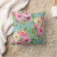 Cet oreiller à jetons est doté d'une parties scintillant d'aqua glam en toile de fond pour ce imprimé à fleurs roses féminin dans les tons rose, pêche et crème.