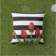 Coussin Roses rouges et bandes blanches noires