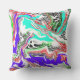 Rouge, bleu, noir et blanc, turquoise, vert citron abstrait art moderne coussin.