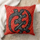 Beau coussin de conception de tissu de boue en rouge avec le symbole de Sankofa sur l'avant et le dos en noir et blanc modelé.