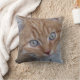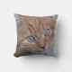 Photo d'un visage de chat tabby rouge et blanc, aux cheveux longs et aux yeux verts. Le type de coussin, la taille et la couleur sur le dos sont personnalisables.
