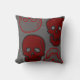 Crânes rouges et gris au-dessus des cercles gris-clair sur un arrière - plan texturisé gris plus foncé.