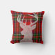 Coussin rouge et vert de Noël de plaid avec des andouillers de mâle de cerfs communs
