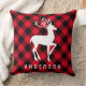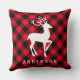 Coussin Rouge Rustique Plaid Buffalo Cerf Noël Monogramme